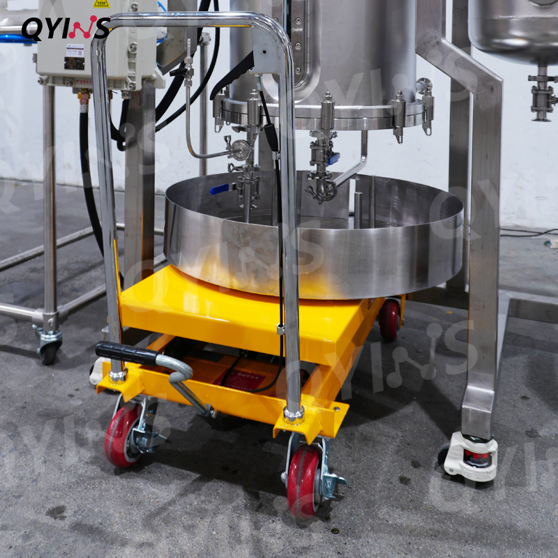 可移動(dòng)升降接料小車+不銹鋼托盤,輔助使用人員快速安裝或拆卸過濾裝置,便于收集固狀粉狀物料。